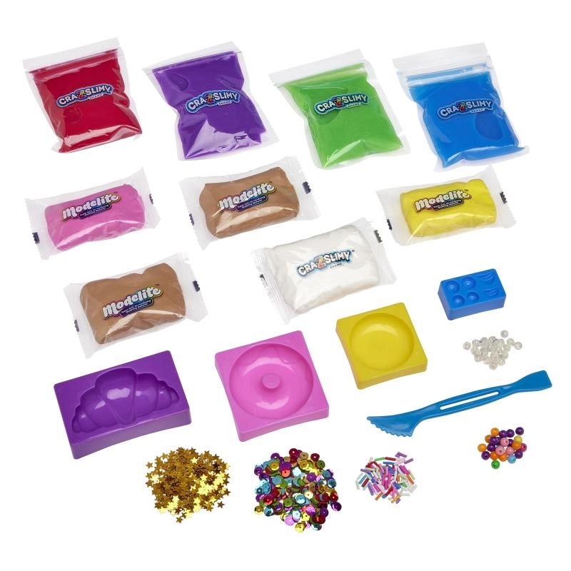 Erschaffen Sie niedliche Dessert-Kreationen ohne Krümel und Chaos. Das Cra-Z-Slimy Konditoren-Manie Set enthält Slimes mit verschiedenen Konsistenzen, eine leichte luftige Knetmasse und reichlich Deko (Glitzer, Konfetti, Perlen). Dank praktischer Formen in Gebäckoptik ist das Modellieren einfach und macht auch Anfängern Spaß.