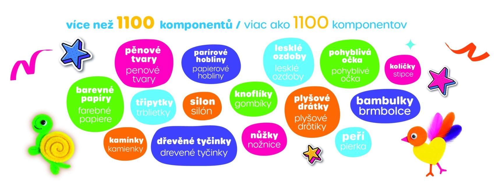 Dieses vielseitige Kreativset fördert die kindliche Fantasie und die Feinmotorik. Dank der abwechslungsreichen Mischung an Komponenten – wie Pfeifenreiniger, Pompons, Schaumstoffformen, Perlen, Federn und Aufklebern – können Kinder einfache bis anspruchsvollere Projekte ganz nach Lust und Laune gestalten.