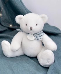 Dieser weiße Plüsch-Teddybär mit elegantem Halstuch ist so gestaltet, dass er Kindern ein Gefühl von Sicherheit und Geborgenheit gibt. Die samtweiche Oberfläche lädt zum Kuscheln ein, während die leichte Konstruktion perfekt für kleine Kinderhände ist. Der Bär entspricht den europäischen CE-Normen und ist somit eine sichere Wahl für Neugeborene und ältere Kinder.