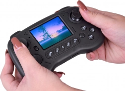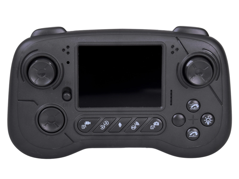 Die ergonomische Fernsteuerung mit Display bietet eine übersichtliche Live-Vorschau, 2 Geschwindigkeiten, Steuerung von Richtung und Lichtern sowie Foto/Video und Sprachkommunikation per Tastendruck.