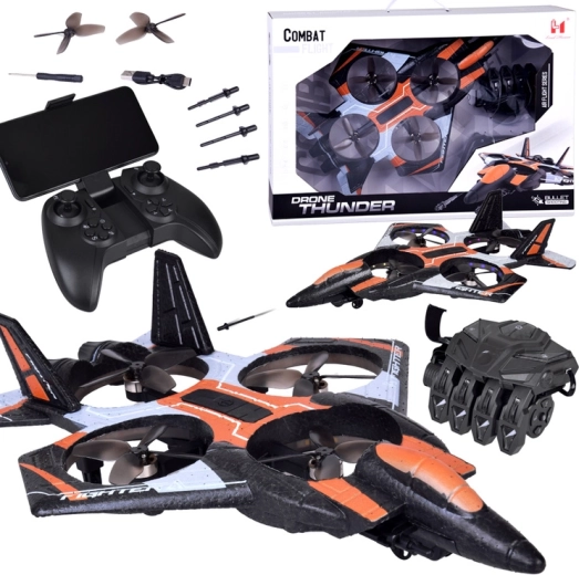 Die Fernsteuerung verfügt über eine Schussfunktion. Im Lieferumfang sind 4 leichte Kunststoffpfeile enthalten, die während des Flugs für Luftduelle abgefeuert werden können.