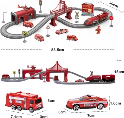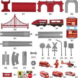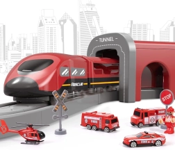 Baue deine eigene Rettungsstadt mit Brücke, Tunnel, Station und Verkehrszeichen. Der elektrisch angetriebene Zug zieht dank magnetischer Kupplungen die Waggons mühelos, und Kinder genießen realistische Geräusche bei der Fahrt über unterschiedlich geformte Schienen.
