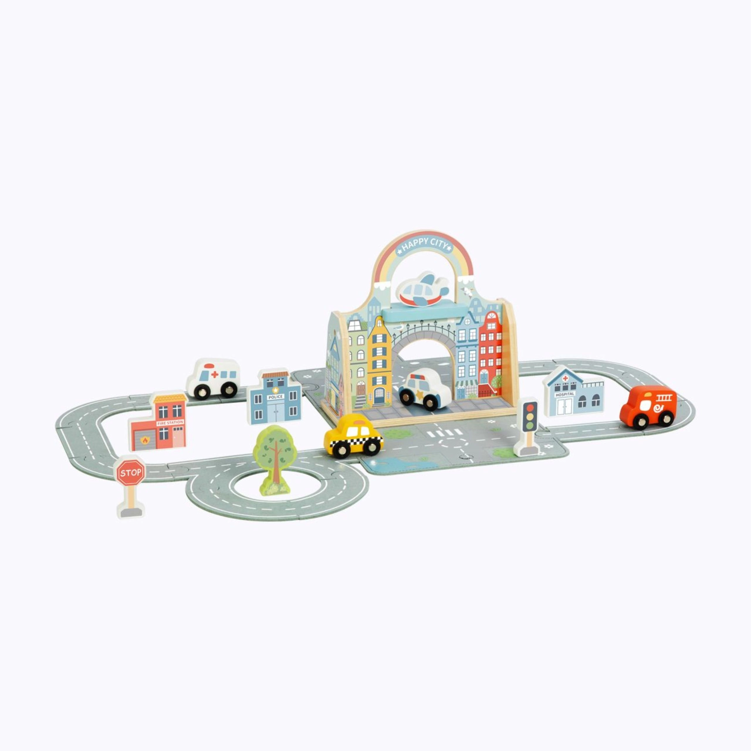 Das Spielzeug fördert Feinmotorik, logisches Denken und Kreativität. Hochwertige Holzteile mit farbigen Prints laden zu langem und sicherem Spiel ein und sind mit weiteren Mini-Stadt-Sets kompatibel – für eine noch größere Fantasiewelt.