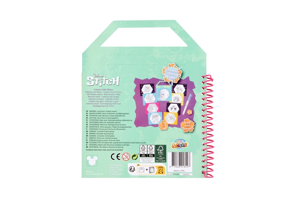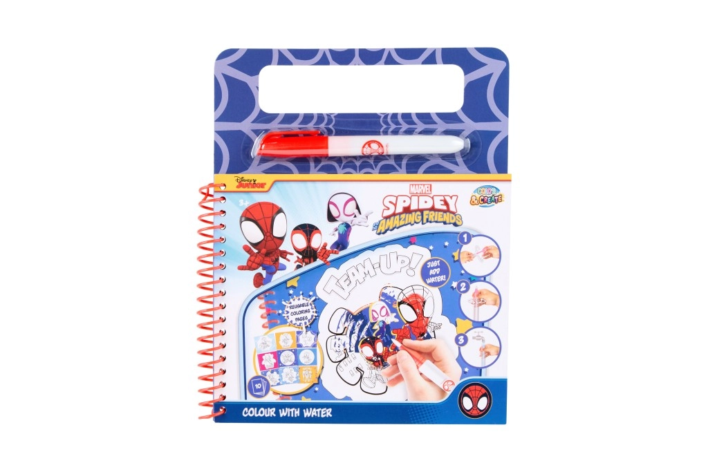 Dieser portable Wasser-Malblock im Format A5 bietet Kindern ein einfaches und sauberes Ausmalerlebnis. Einfach den Wasserstift füllen, über die Seite streichen und verborgene Farben mit beliebten Helden aus der Welt von SPIDEY erscheinen sofort. Sobald das Blatt trocknet, verblassen die Farben, und das Kind kann immer wieder neu malen.