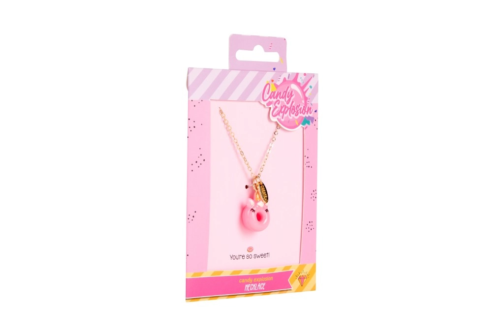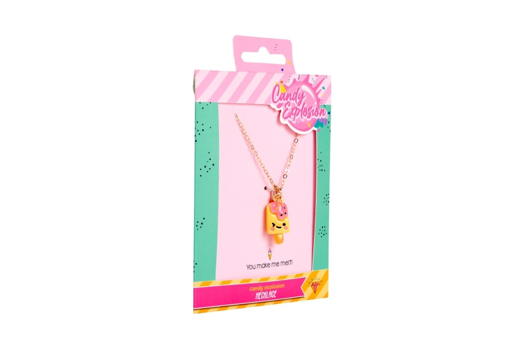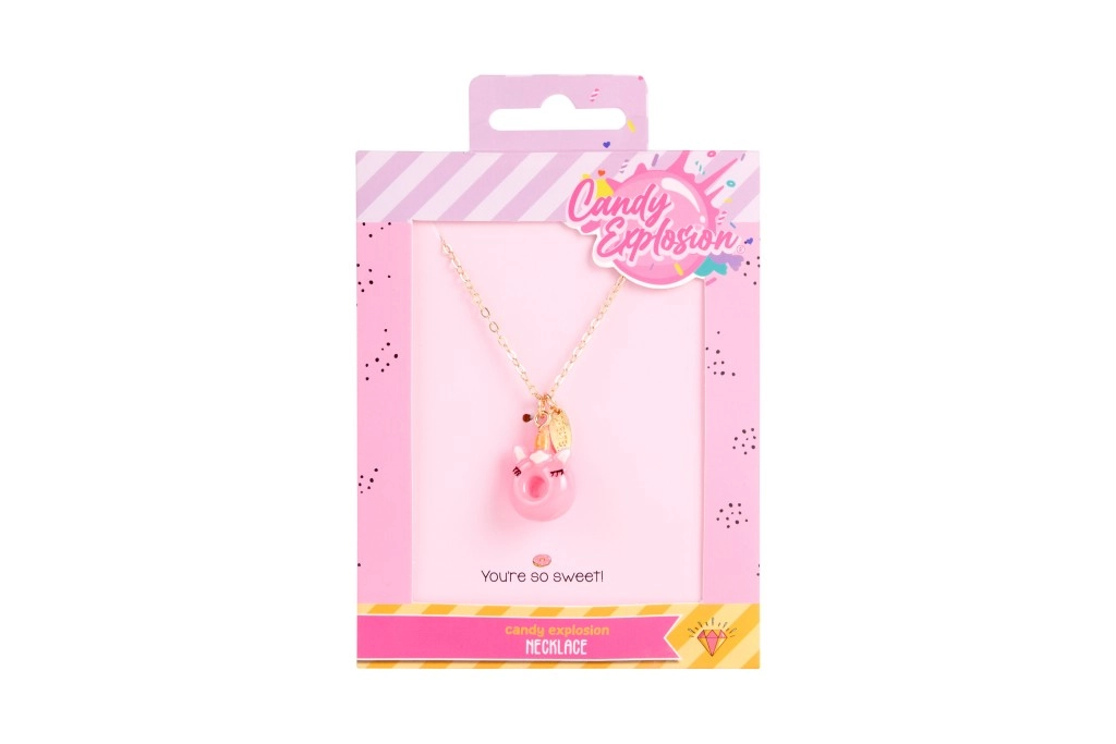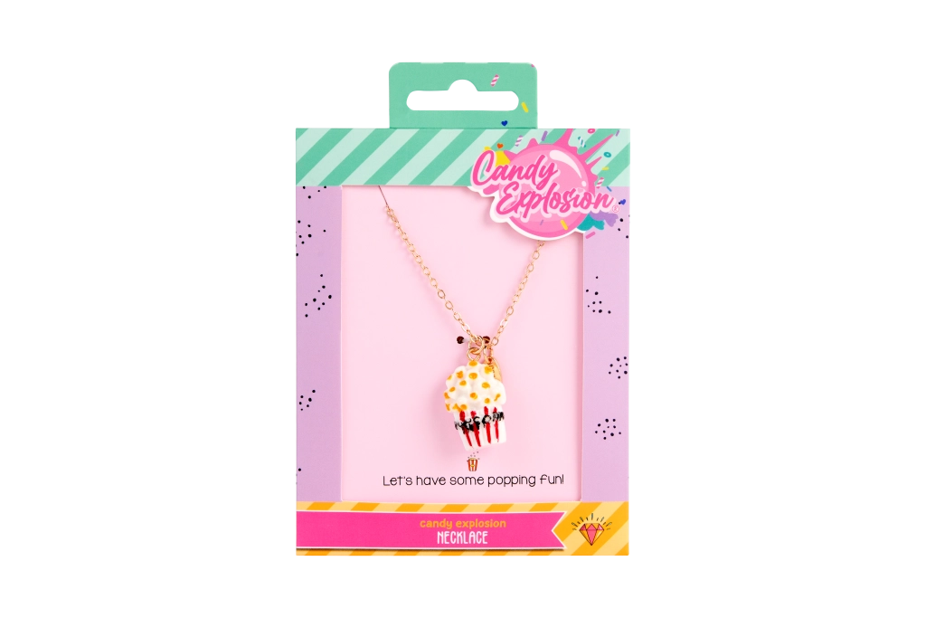 Die niedliche Kinderhalskette mit einer Kollektion süßer Anhänger aus der Reihe Candy Explosion begeistert jede kleine Fashionista. Die leichte goldfarbene Kette mit einem verspielten Emaille-Anhänger (Donut, Eis am Stiel, Getränk, Cupcake oder Popcorn) und verstellbarer Länge ist ideal für jeden Tag und kommt in einer Geschenkverpackung, bereit zum Verschenken.