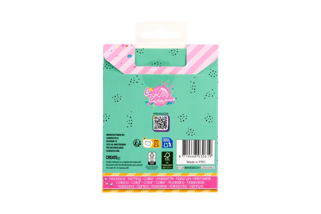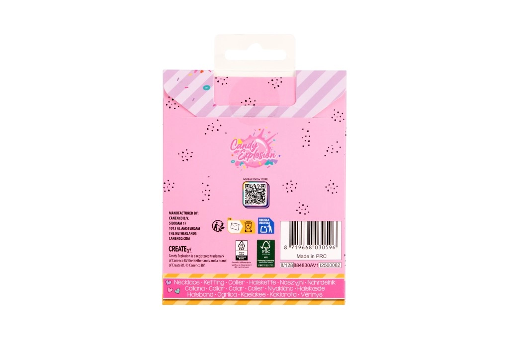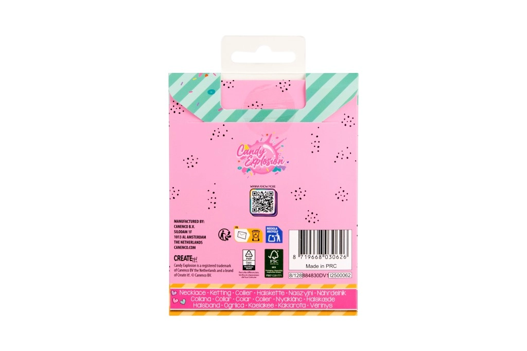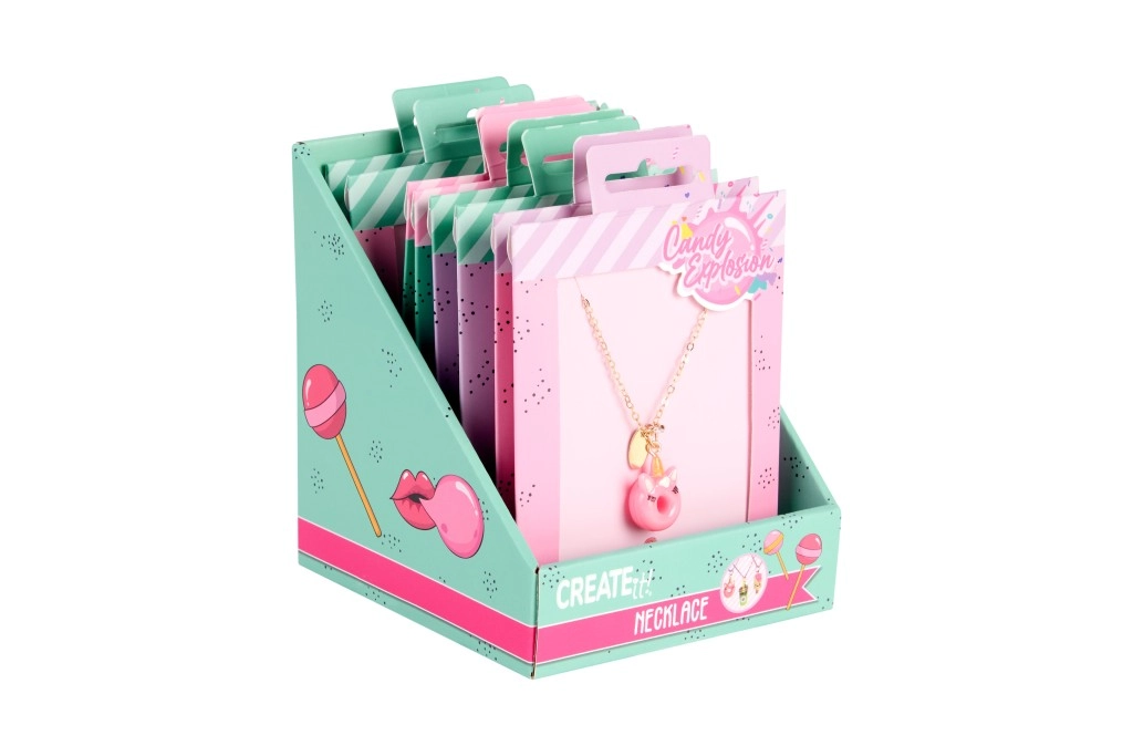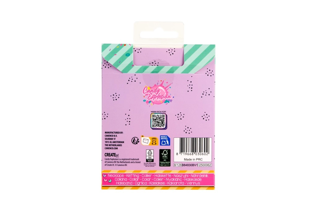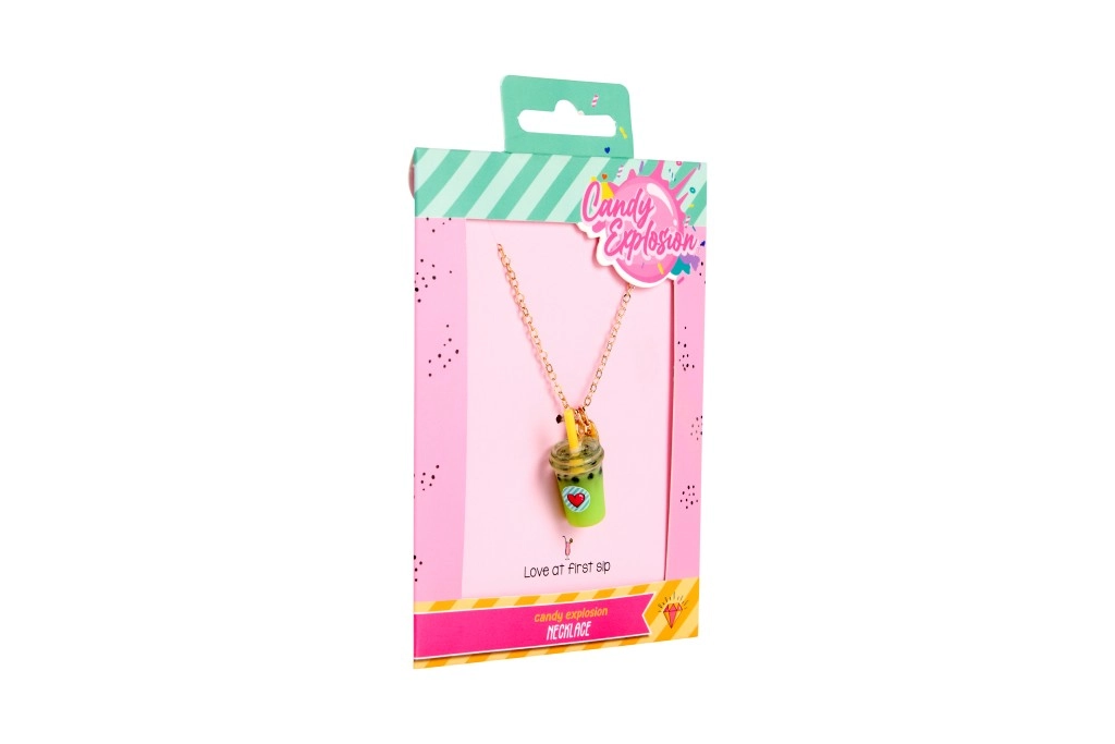 Jede Halskette kommt auf einer stilvollen Candy-Explosion-Karte mit Aufhängeöffnung – ideal als kleines Mitbringsel.