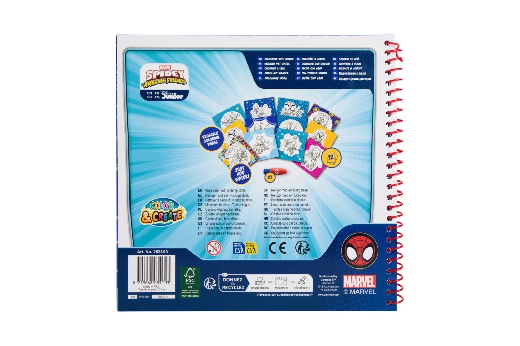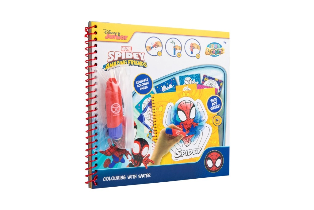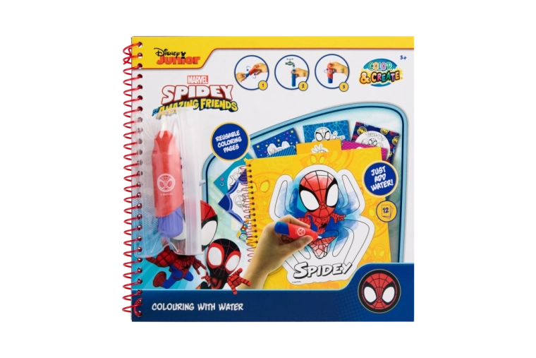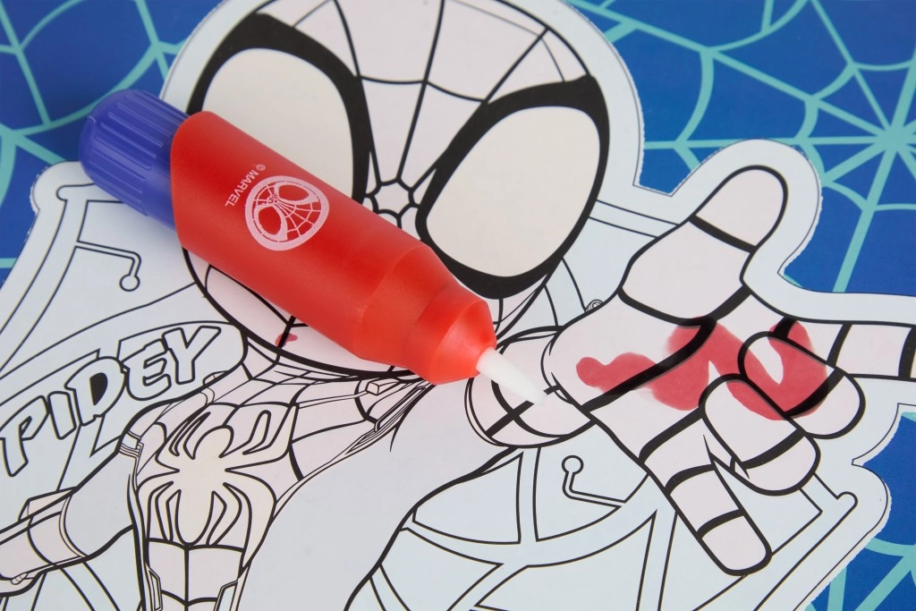 Die Wasser-Malbilder Spidey bieten Kindern stundenlangen kreativen Spaß ganz ohne Kleckern. Es braucht nur Wasser – keine Farben und keine Stifte. Beim Auftragen von Wasser erscheinen leuchtende Farben und Illustrationen der beliebten Helden aus der Welt von Spidey. Sobald das Bild trocknet, verschwinden die Farben und Kinder können immer wieder von Neuem malen.