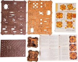 Das Modell besteht aus umweltfreundlichem Birkensperrholz; die Teile greifen ohne Klebstoff oder Werkzeug ineinander und ermöglichen dank Laserpräzision einen reibungslosen Bauablauf. Die ungefähre Montagezeit beträgt ca. 3 Stunden, der Schwierigkeitsgrad von 4,5/5 begeistert erfahrene Baumeister ebenso wie Fans von Escape-Spielen.