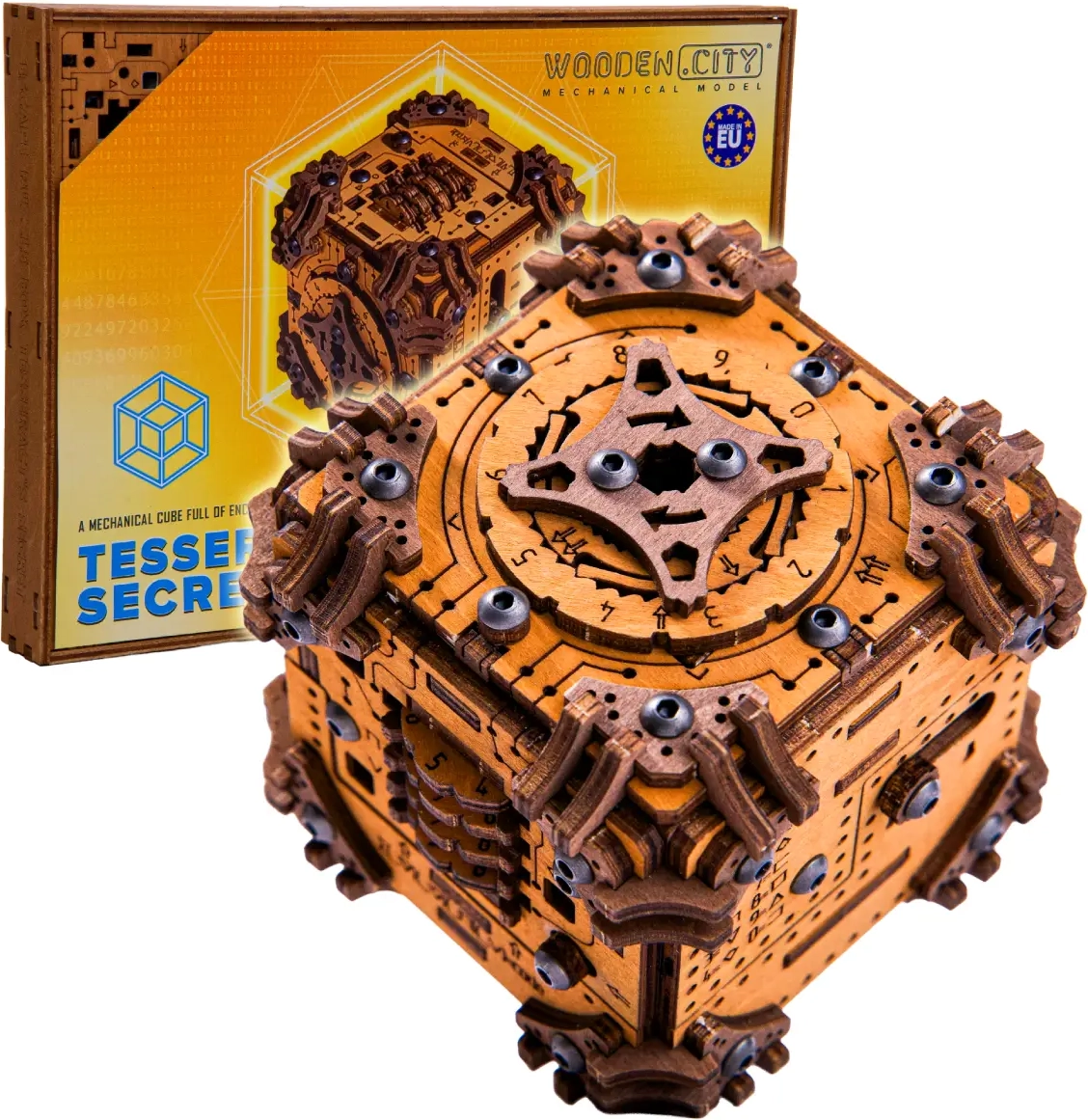 Das hölzerne 3D-Puzzle Tesserakt ist eine ästhetische und logische Herausforderung in einem. Bauen Sie den mechanischen Würfel aus 195 präzise geschnittenen Teilen und entdecken Sie seine verborgenen Mechanismen. Keine rohe Gewalt – nur Feinheit und durchdachte Schritte führen zur Öffnung der versteckten Schatulle.