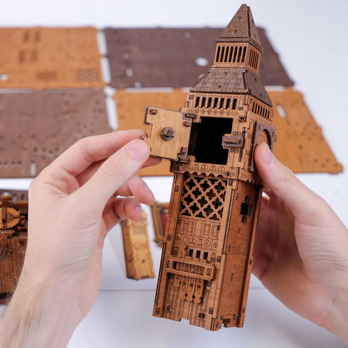 Setzen Sie Logik, Feinmotorik und Geduld ein – Kraft ist hier nicht nötig. Jedes Teil passt präzise und offenbart verborgene Lösungen des mechanischen Puzzles. Das Modell vereint den Zauber des Londoner Uhrturms mit einem außergewöhnlichen Escape-Mechanismus für ein einzigartiges Bau- und Entdeckerlebnis.