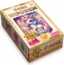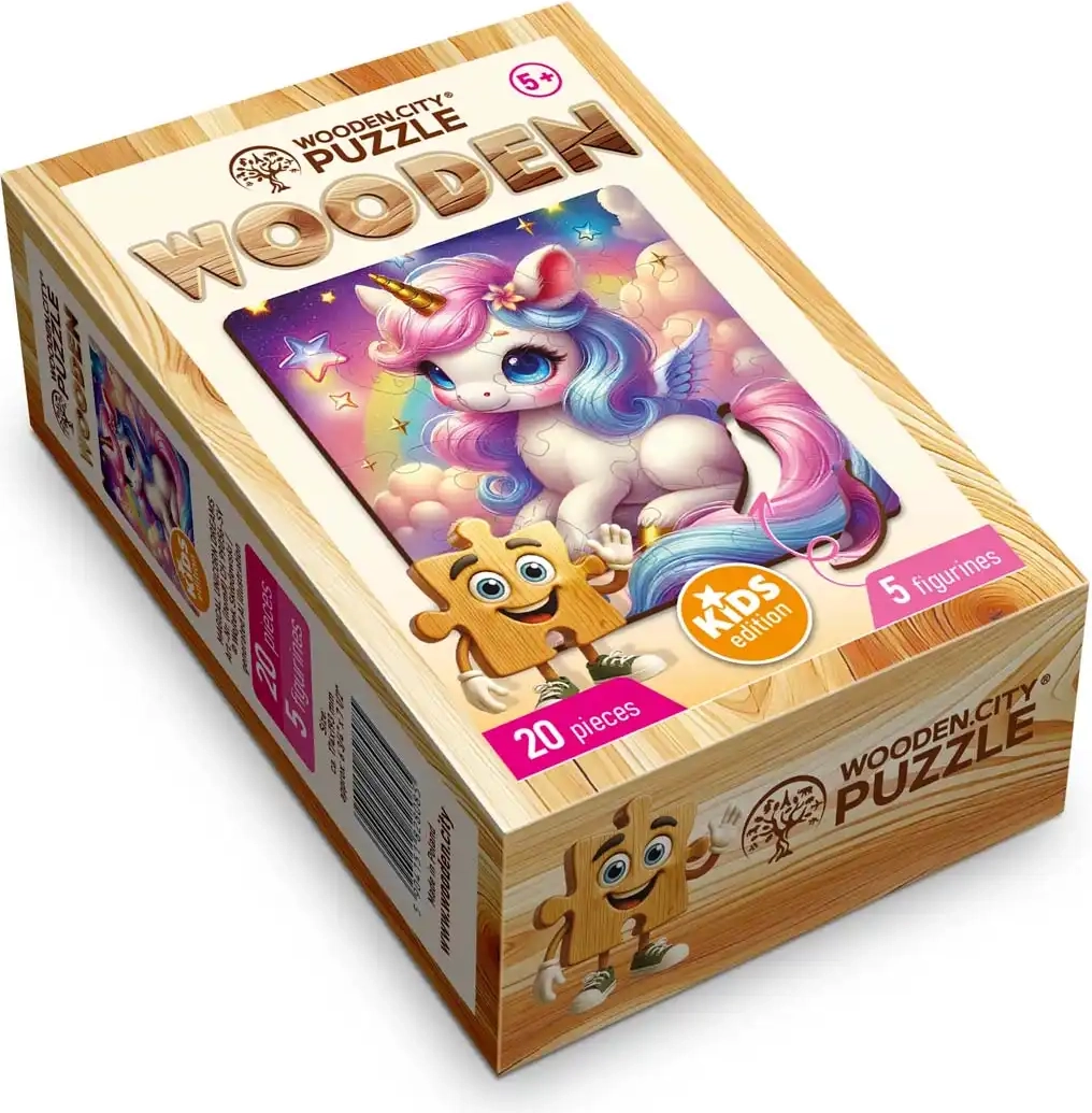 Das Kinder-Holzpuzzle WOODEN CITY mit dem Motiv magischer Einhörner begeistert kleine Märchenfans. Hochwertige Verarbeitung, angenehme Farben und durchdachte Formen unterstützen die Feinmotorik und das logische Denken. Dank der kompakten Maße ist das Puzzle ideal für zu Hause und unterwegs.