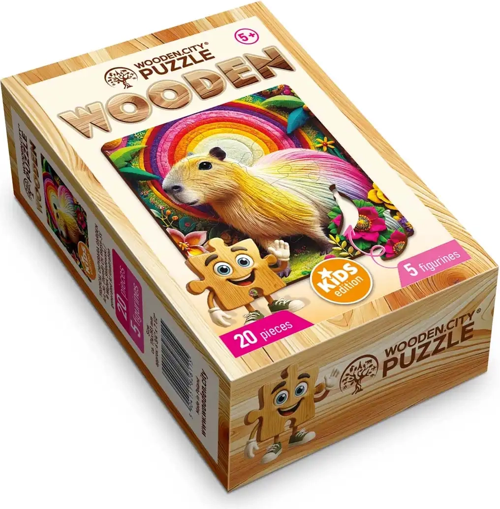 Dieses niedliche Puzzle mit Kapybara-Motiv bringt Kindern Freude am Puzzeln und ein Erfolgserlebnis nach dem Fertigstellen des Bildes. Dank der hochwertigen Verarbeitung sind die Teile langlebig, passgenau und angenehm in der Hand. Ideal als Geschenk und als erster Schritt in die Welt der Holzpuzzles.