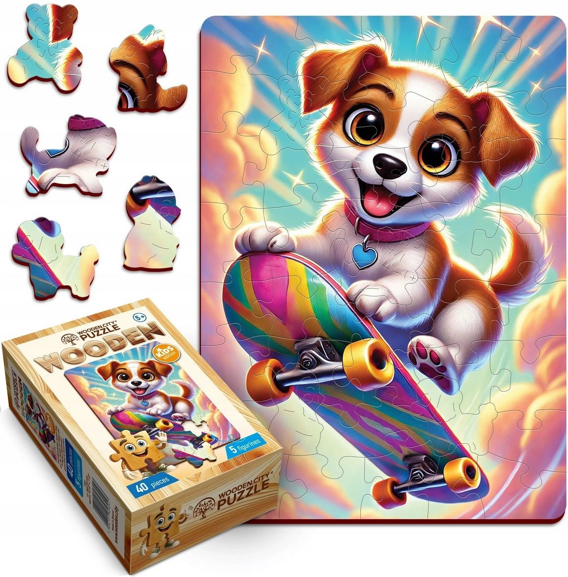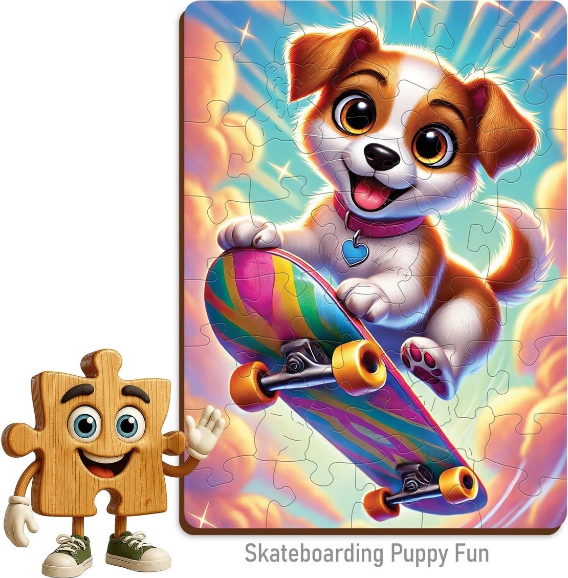 Das Holzpuzzle mit dem Motiv eines Hündchens auf dem Skateboard ist eine tolle Wahl für Kinder, die kreative Spiele lieben. Hochwertiges Material und sorgfältige Verarbeitung sorgen für angenehmes Puzzeln und eine lange Lebensdauer. Im Lieferumfang ist außerdem eine separate Vorlage enthalten, die den Einstieg erleichtert.