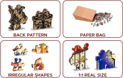 Bis zu 50 speziell geformte Teile in Form von Figuren und Objekten verleihen dem Puzzeln Verspieltheit und Originalität. Jedes Teil passt exakt und behält seine Form.