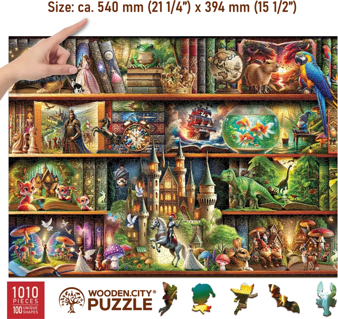 Gönnen Sie sich kreative Entspannung mit dem originellen Holzpuzzle „Geschichte in jedem Regal“. Dank präziser Laserbearbeitung greifen die Teile perfekt ineinander und das fertige Bild behält stabil seine Form. Eine Vorlage für bessere Orientierung fehlt nicht, ebenso wenig wie ein detailreiches Motiv, das Sie Stück für Stück entdecken werden.