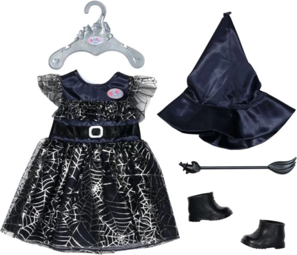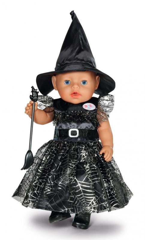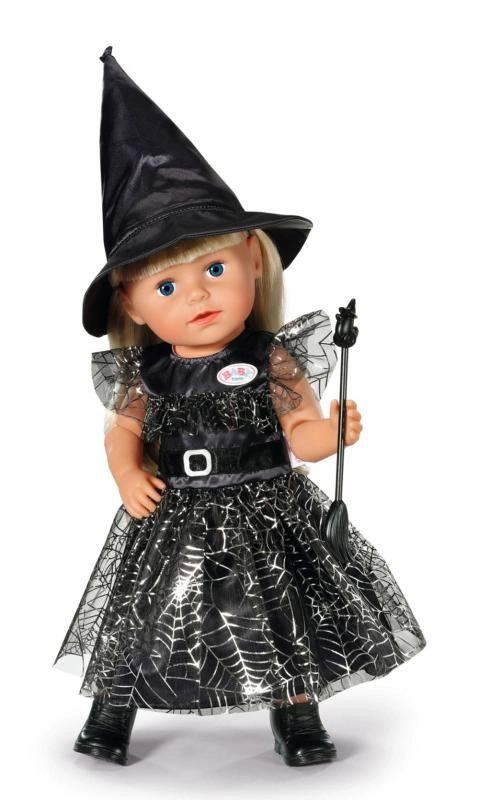 Verwandeln Sie Ihre Puppe in eine kleine Hexe. Das Hexenkostüm für 43 cm große Puppen bringt Spaß und viele Spielmöglichkeiten. Leichte, angenehme Materialien lassen sich einfach anziehen, sodass Kinder das Kostüm selbst an- und ausziehen können.