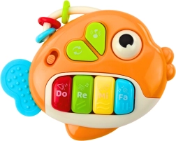 Das Musik-Klavier Fisch ist das ideale erste Musikinstrument für Kleinkinder. Die vier deutlich gekennzeichneten Tasten Do, Re, Mi, Fa spielen beim Drücken fröhliche Melodien und einzelne Töne ab und fördern so auf natürliche Weise Rhythmusgefühl und Hörwahrnehmung. Die ergonomische Fischform liegt hervorragend in kleinen Händen, das leichte Gehäuse und die glatten, abgerundeten Kanten sorgen für sichere und bequeme Nutzung.