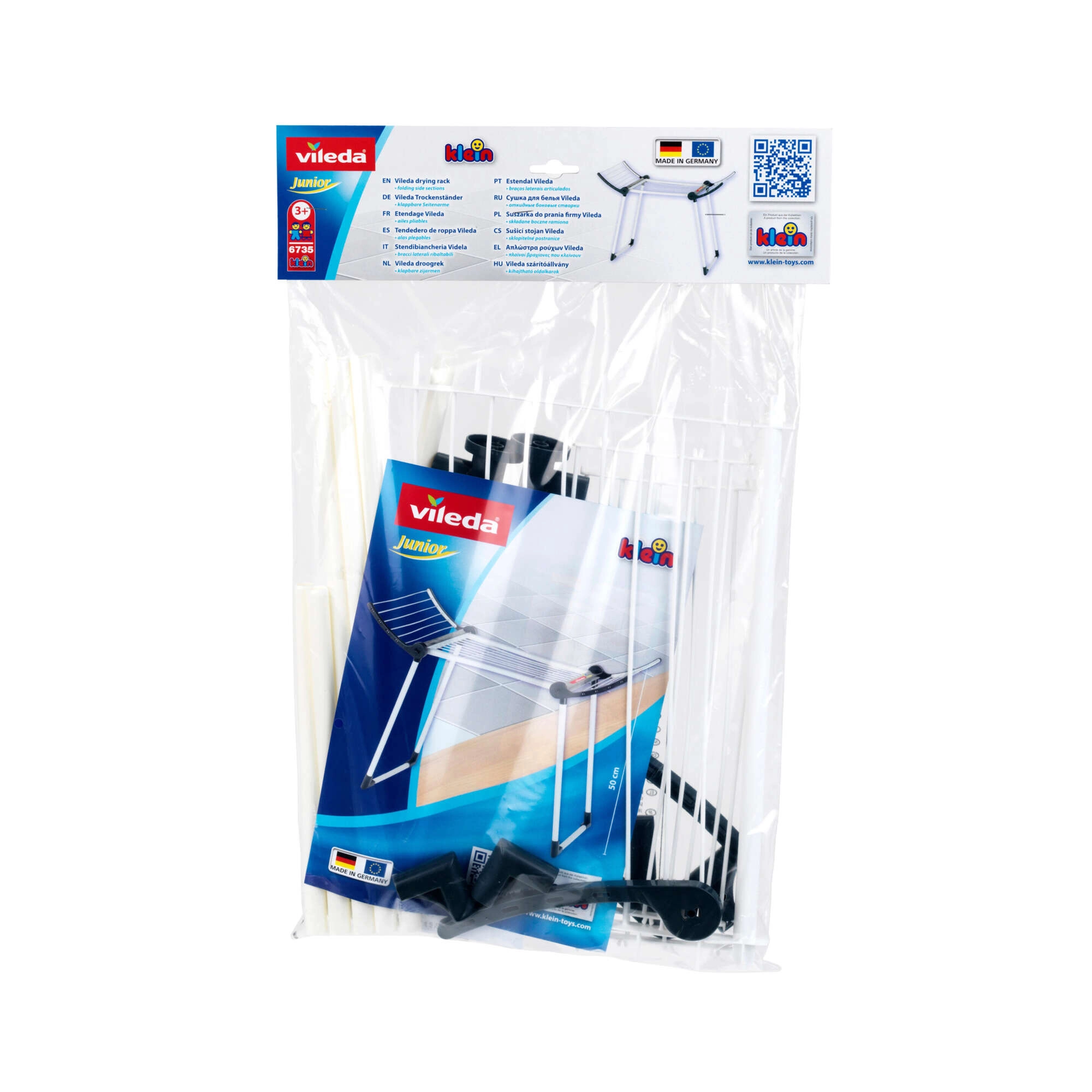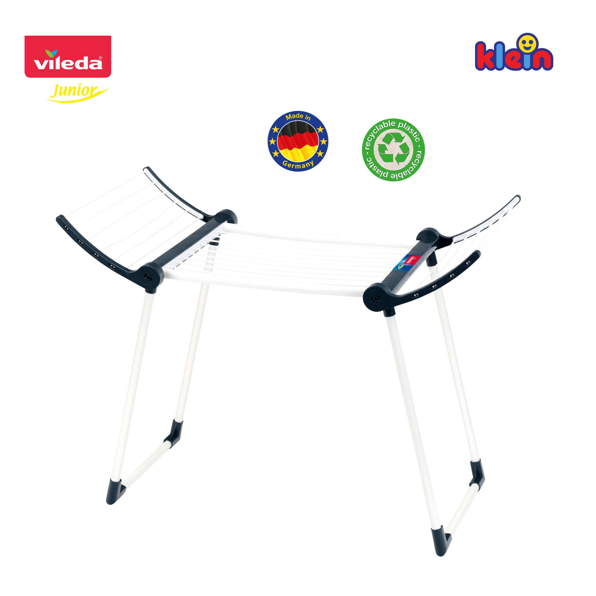 Der realistische Kinder-Wäschetrockner Vileda von KLEIN ist eine originalgetreue Nachbildung eines echten Trockners und bietet Kindern eine sichere und unterhaltsame Möglichkeit, häusliche Tätigkeiten nachzuahmen. Er ist mit Liebe zum Detail gefertigt, hat stabile Doppelfüße, zwei klappbare Seiten und ist leicht. Dank der Möglichkeit zum Zusammenklappen auf kleinere Maße nimmt er bei Nichtbenutzung keinen Platz weg.
