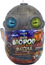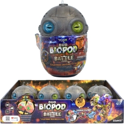 Die Biopod Figuren – Duo Battle Edition bringen zwei Kapseln voller Überraschungen und Nervenkitzel. Schon auf den ersten Blick fallen die leuchtenden Augen auf, die durch das schwarze Gehäuse sichtbar sind. Berühre ihren Kopf und sieh zu, wie sich die Farben verändern und die Teamidentität enthüllt wird. In jedem Biopod findest du einen Dinosaurier, den du aus mehreren Teilen ganz einfach zusammensetzen kannst – perfekt für Kinder, die Kreativität und Action lieben.
