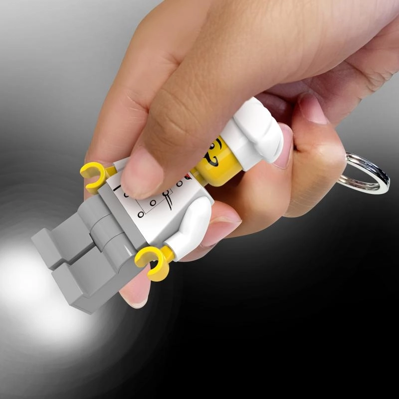 Die beliebte Minifigur in der Chefkoch-Version verwandelt Ihren Schlüsselbund in ein stylisches Accessoire, das gleichzeitig im Dunkeln hilft. Einfach die Taste drücken und das helle weiße LED-Licht leuchtet das Schloss oder den Rucksack aus.