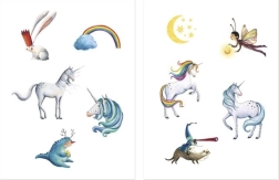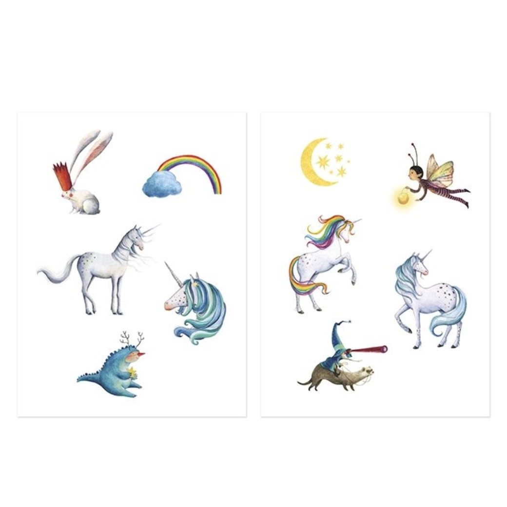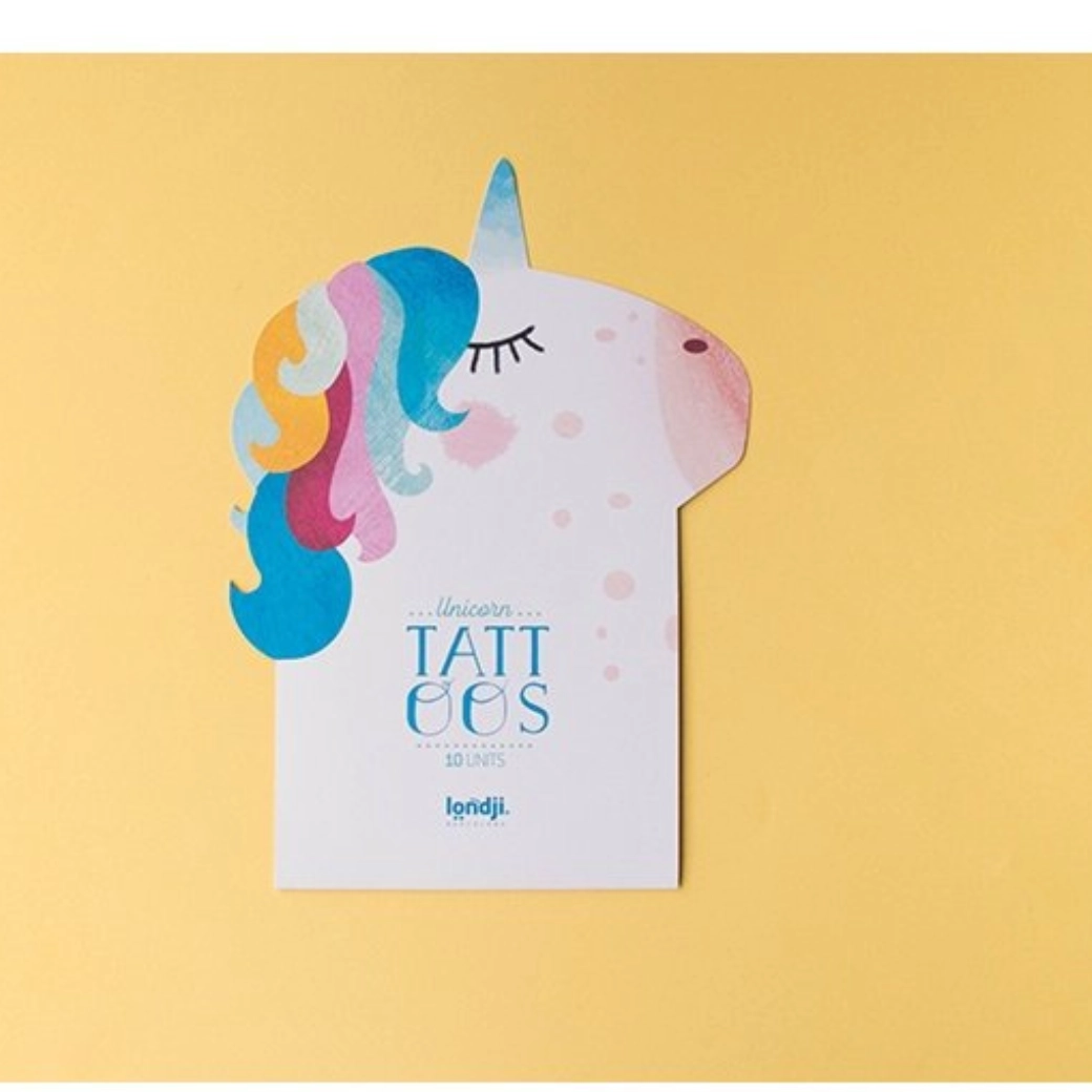 Entdecke eine zauberhafte Welt mit den temporären Tattoos von LONDJI. Kinder werden die verspielten Einhorn- und Regenbogenmotive lieben, die jedem Fest, Ausflug und Alltag Stil verleihen. Die Anwendung ist einfach und macht Spaß, das Ergebnis ist ausdrucksstark und fröhlich.