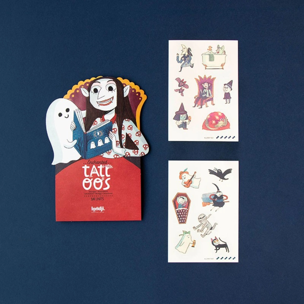 Das thematische Set temporärer Tattoos von LONDJI entführt in eine geheimnisvoll-magische Welt voller Schlösser, Figuren und Fantasie. Dank der einfachen Anwendung mit Wasser genießen Kinder eine schnelle Verwandlung und Eltern schätzen die hautfreundliche Zusammensetzung und das leichte Entfernen.