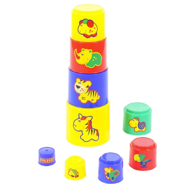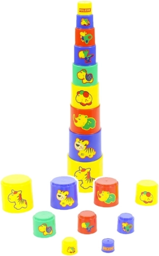 Die Becher lassen sich leicht zu einem hohen Turm stapeln oder ineinander stecken – ideal zum Trainieren der Feinmotorik und des logischen Denkens.