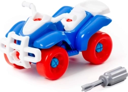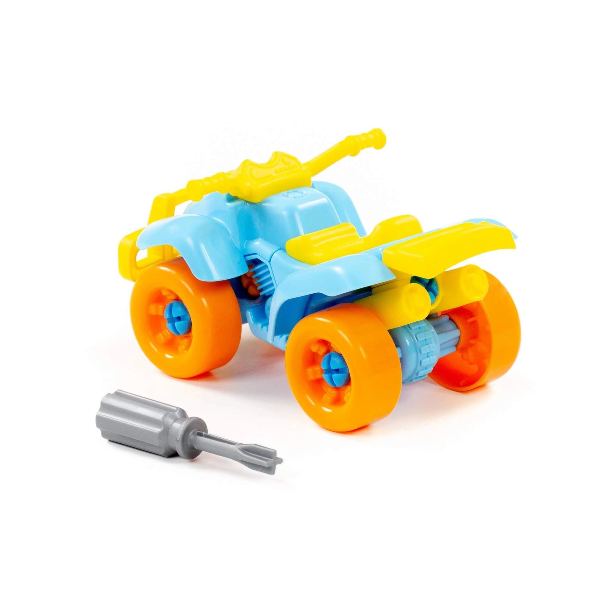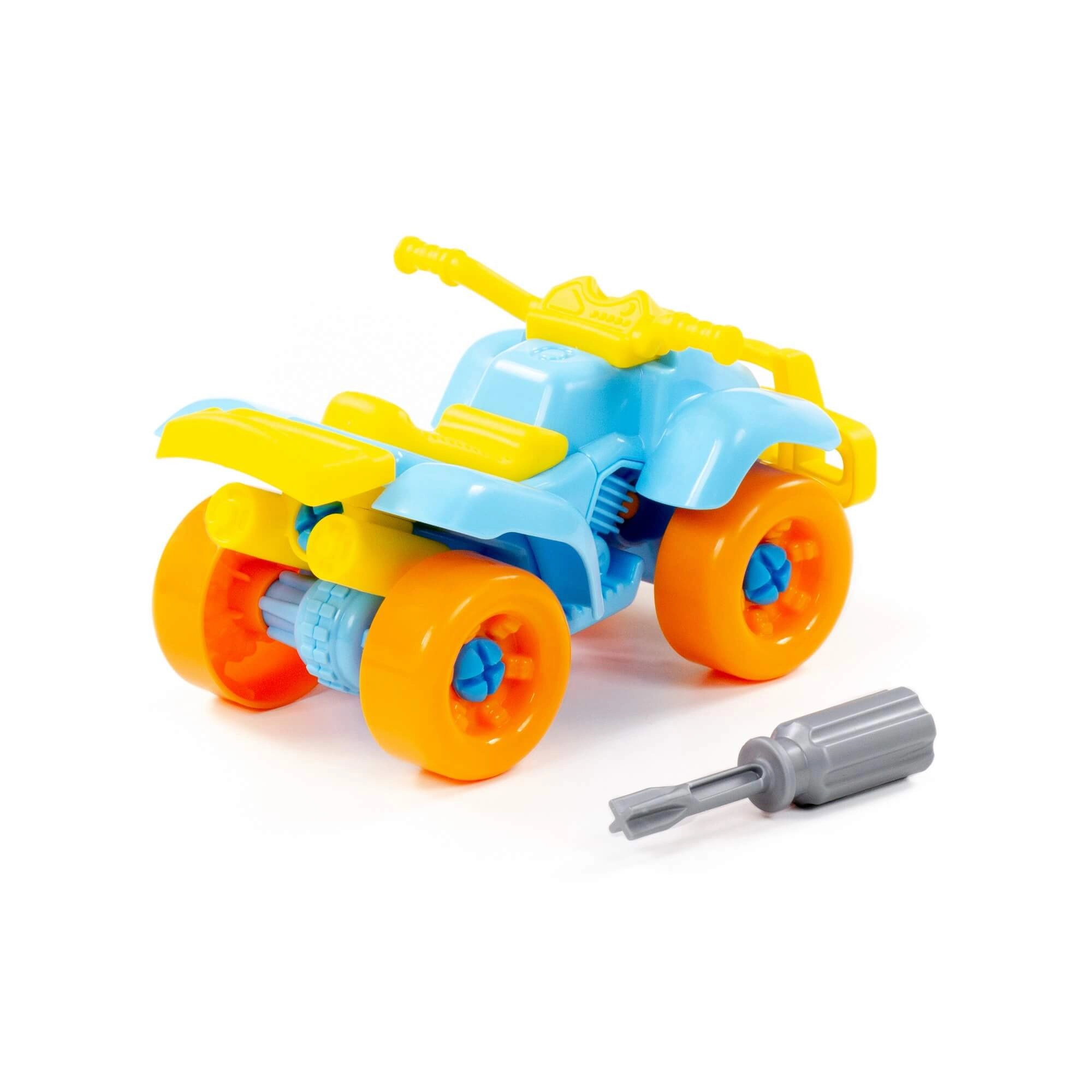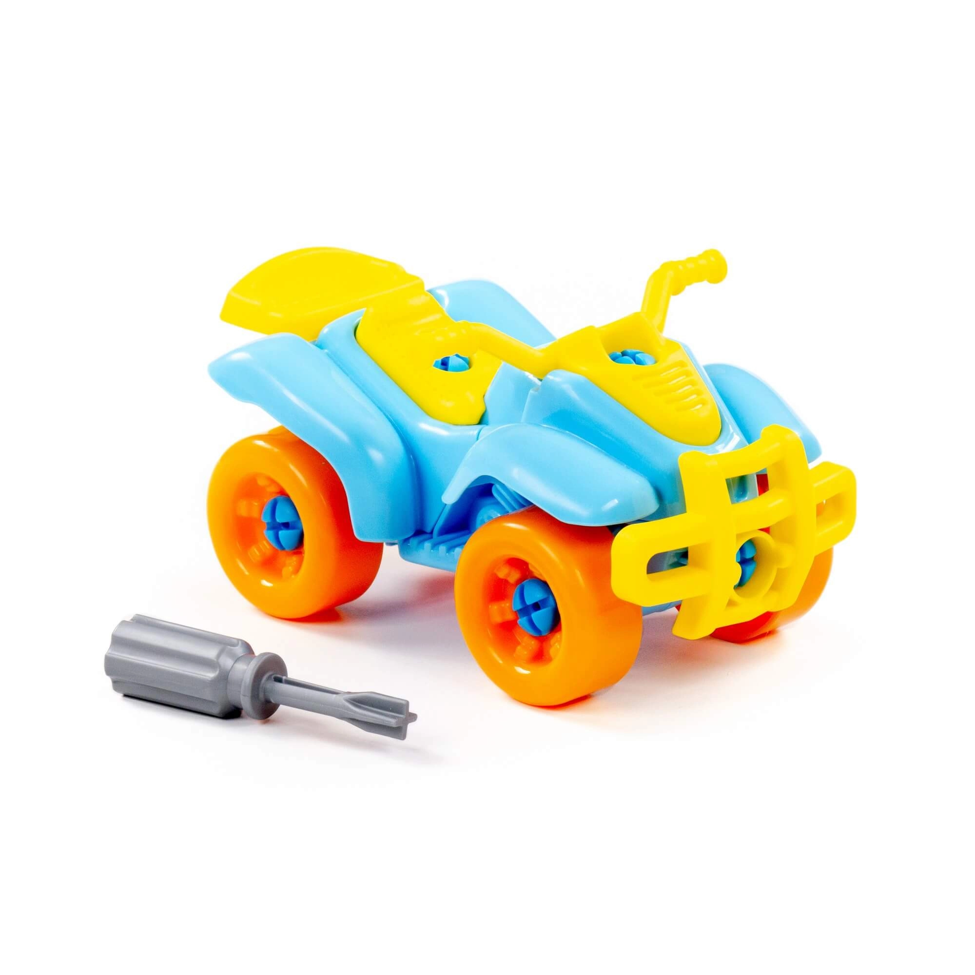 Bunter schraubbarer Quad für kleine Konstrukteure, fördert Feinmotorik, logisches Denken und Geduld. Kinder können ihn mithilfe des beiliegenden Schraubendrehers zerlegen und wieder zusammenbauen. Es stehen zwei Farbvarianten zur Verfügung. Maße ca. 190 × 90 × 245 mm. Geeignet für Kinder ab 3 Jahren. Preis gilt pro 1 Stück.