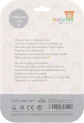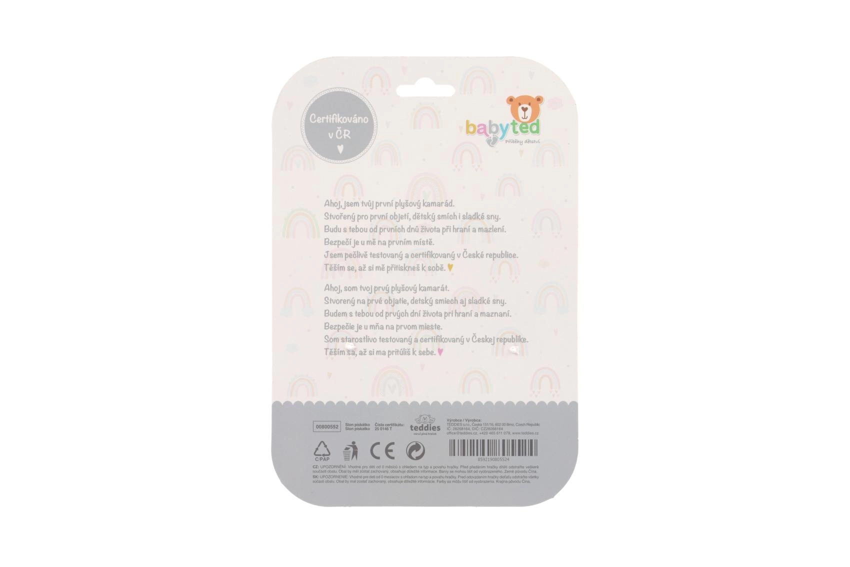 Am Ende des Griffs befindet sich ein weiches Beißteil aus Kunststoff in Blumenform, das empfindliches Zahnfleisch beim Zahnen lindert. Kontrastmuster an Ohren und Körper fördern die visuelle Wahrnehmung und Sinnesentwicklung. Das Spielzeug ist in Tschechien zertifiziert und erfüllt somit strenge Sicherheitsstandards für Kinder ab 0 Monaten.
