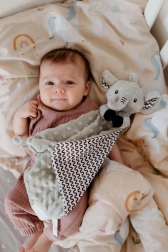 Schenken Sie Ihrem Baby einen beruhigenden Begleiter für jeden Tag. Das Elefanten-Schmusetuch von BABYTED besteht aus außergewöhnlich angenehmem Minky mit markanter 3D-Struktur, die den Tastsinn stimuliert und zum Kuscheln einlädt. Dank des leichten Designs und der Knoten an den Ecken können es auch die kleinsten Händchen mühelos greifen.