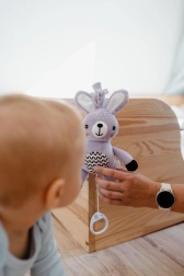 Der praktische Clip ermöglicht es, den Hasen schnell am Kinderwagen, Bettchen, Autositz oder an der Spielbogenstange zu befestigen – immer griffbereit zu Hause und unterwegs.