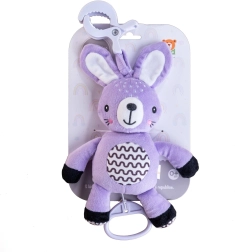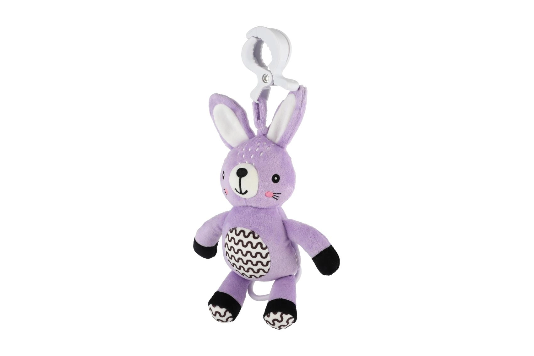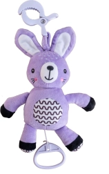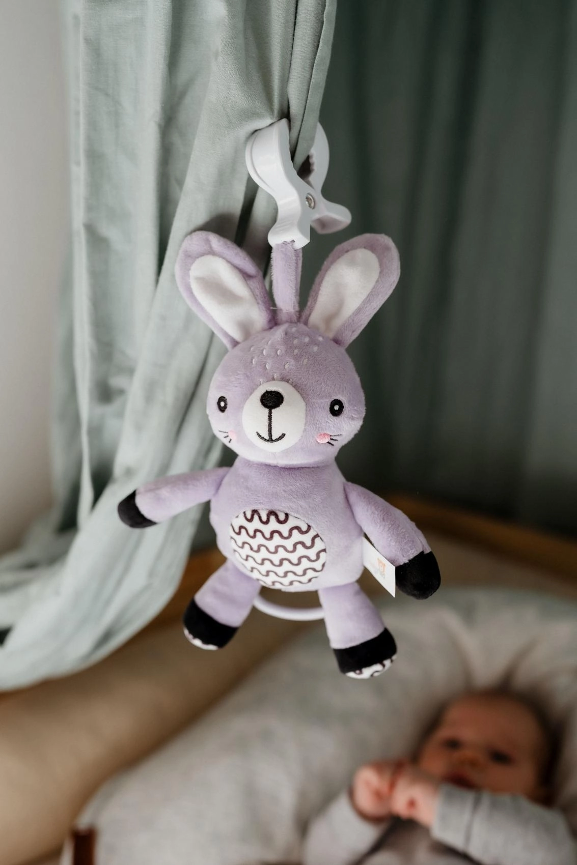 Dieser hängende Plüschhase bietet Babys Trost, sanfte Stimulation und sicheren Spielspaß zu Hause und unterwegs. Nach dem Aufziehen spielt das Spielwerk eine angenehme Melodie, die eine ruhige Umgebung für die Erholung schafft. Dank des universellen Clips lässt sich das Spielzeug leicht am Kinderwagen, Bettchen, Autositz oder Spielbogen befestigen.