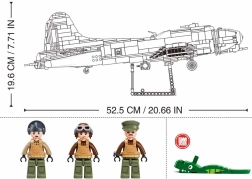 Das Modell bietet zahlreiche Funktionsmerkmale: einziehbares Fahrwerk, drehbare Propeller und bewegliche Teile an Flügeln und Seitenleitwerk zur Einstellung von Flug- oder Landekonfiguration. Enthalten sind ein Ständer mit der Bezeichnung B-17G und 3 Minifiguren der Crew mit Zubehör. Das Set ist kompatibel mit LEGO, Cobi und Mega Bloks, sodass Sie Ihr Modell problemlos um weitere Elemente erweitern können.