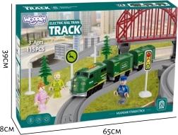 Die große Woopie-Eisenbahnstrecke bringt realistische Eisenbahnatmosphäre ins Kinderzimmer. Die batteriebetriebene Lokomotive fährt sanft vorwärts und rückwärts, begleitet von realistischen Zuggeräuschen und leuchtenden Scheinwerfern. Mit den variablen Teilen lassen sich einfache Rundkurse ebenso bauen wie komplexe Netzwerke mit Brücken, Viadukten und Weichen.