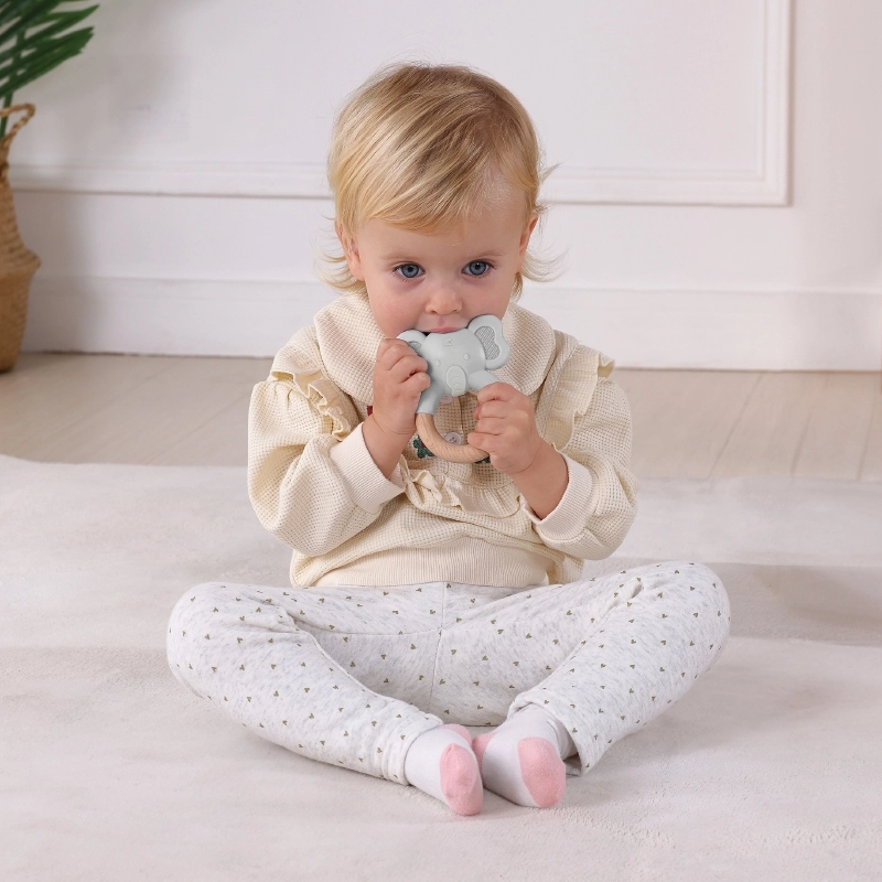 Alle Elemente sind für kleine Kinderhände gestaltet: ein weiches Stoffbuch für die ersten Blättererfahrungen, Zauberboxen mit Tüchern für endloses Entdecken, ein sicherer Silikon-Beißring zur Linderung beim Zahnen, sensorische Bälle mit verschiedenen Texturen für taktile Reize und eine Dreh-Trommel mit Farben und Spiegel für visuelle Faszination.