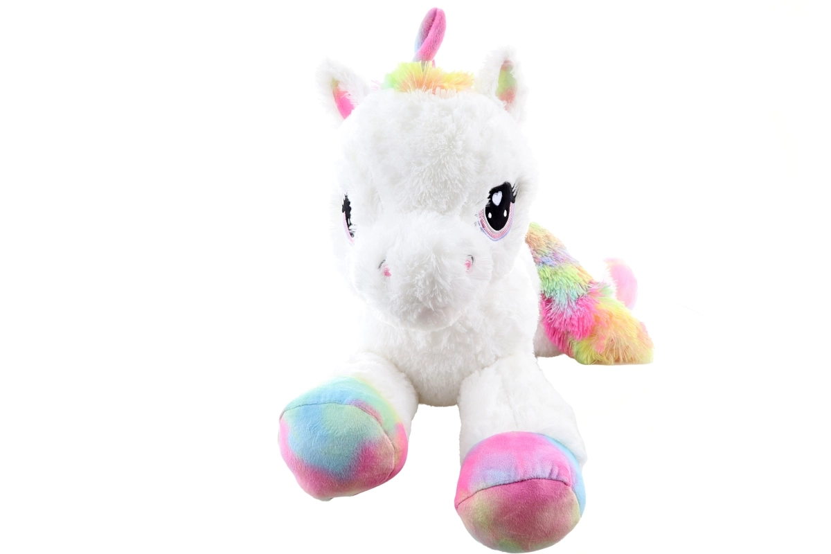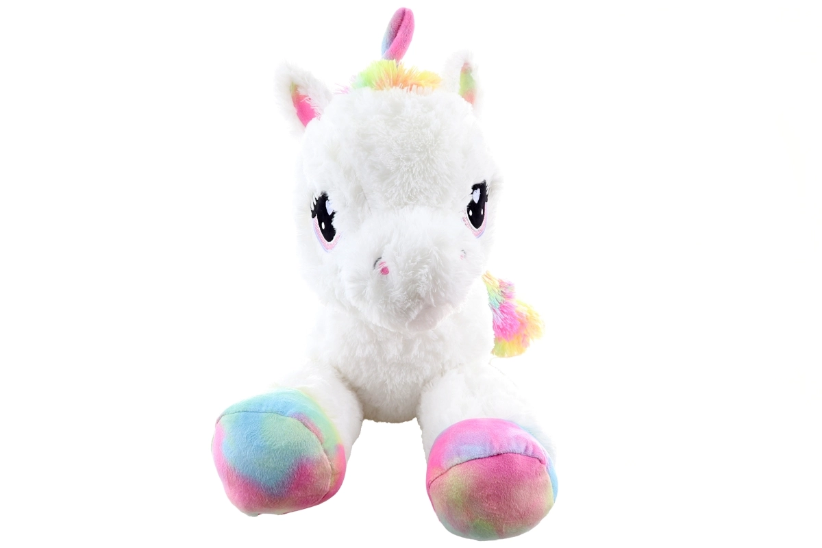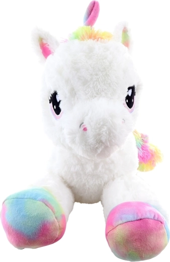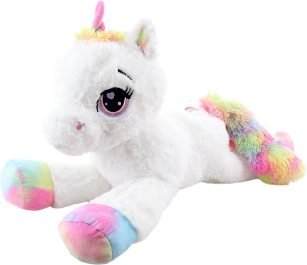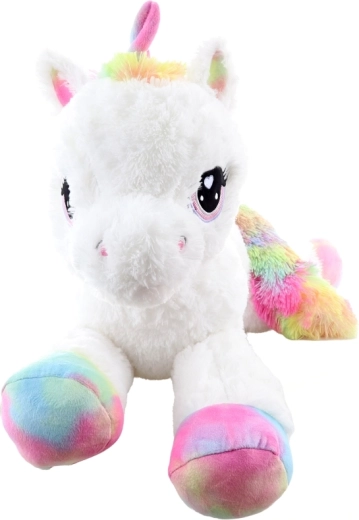 Plüscheinhorn weiß 80 cm mit regenbogenfarbenen Akzenten