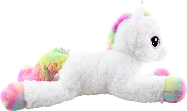 Ein niedliches Plüscheinhorn mit einer Länge von 80 cm erfreut Kinder und Erwachsene. Es ist außergewöhnlich weich, angenehm zu berühren und ideal zum Kuscheln. Bunte Regenbogendetails verleihen dem Spielzeug ein magisches Aussehen, große gestickte Augen und die sorgfältige Verarbeitung gewährleisten sichere Nutzung ab 0+.