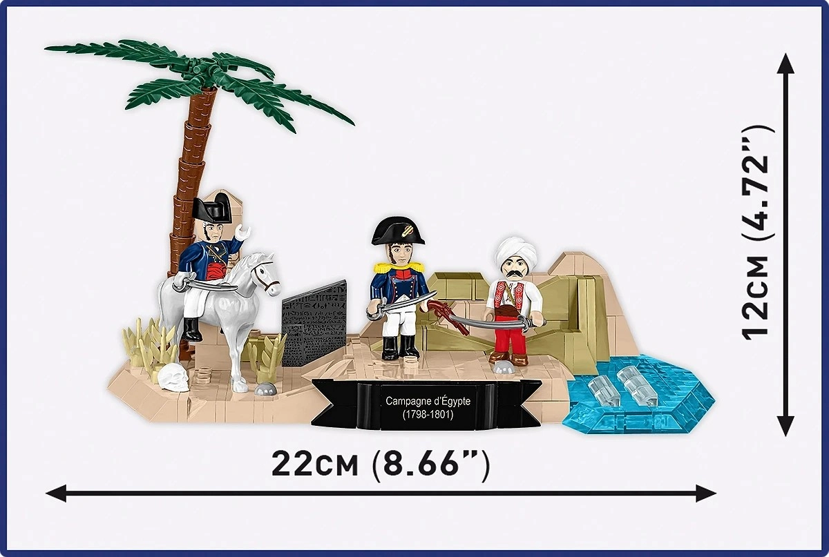 Erleben Sie die spannende Geschichte Napoleons am Nil. Die COBI-Sets der Reihe Napoleonic Wars bringen historische Atmosphäre in Form eines Sammler-Dioramas: eine Palme, ein Abschnitt der Nil-Landschaft und ein einzigartiges Modell des Steins von Rosetta mit langlebigem Druck. Charismatische Figuren sind inklusive – General Jean‑Baptiste Kléber, Leutnant Pierre‑François Bouchard und ein Mameluck mit traditionellem Säbel.