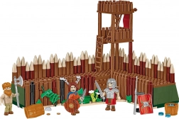 Baue einen Holzturm mit gespitzter Palisade, Treppen und Leitern. Die modulare Konstruktion ermöglicht das einfache Anfügen weiterer Lagerteile und das Erstellen historischer Szenen.