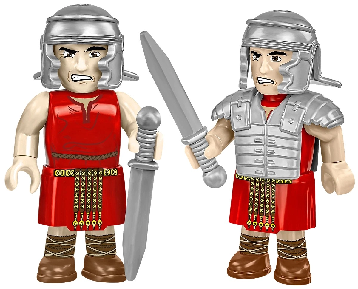 Lass den Legionär mit Scutum-Schild und Gladius das Lager gegen bewaffnete Krieger verteidigen. Abnehmbare Zubehörteile und Drucke unterstützen vielfältiges Spielen.