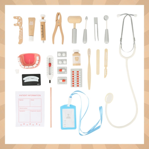 Führen Sie Kinder spielerisch in die Welt der Zahnmedizin ein. Dieses umfangreiche Set bietet realistische Instrumente, die die Fantasie anregen und die Grundlagen der Zahnpflege vermitteln. Dank der praktischen Stofftasche können kleine Ärzte alles leicht transportieren und nach dem Spielen ordentlich verstauen.