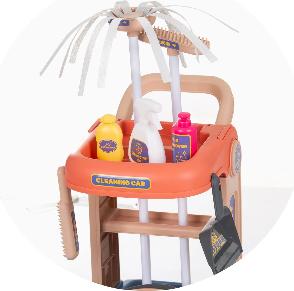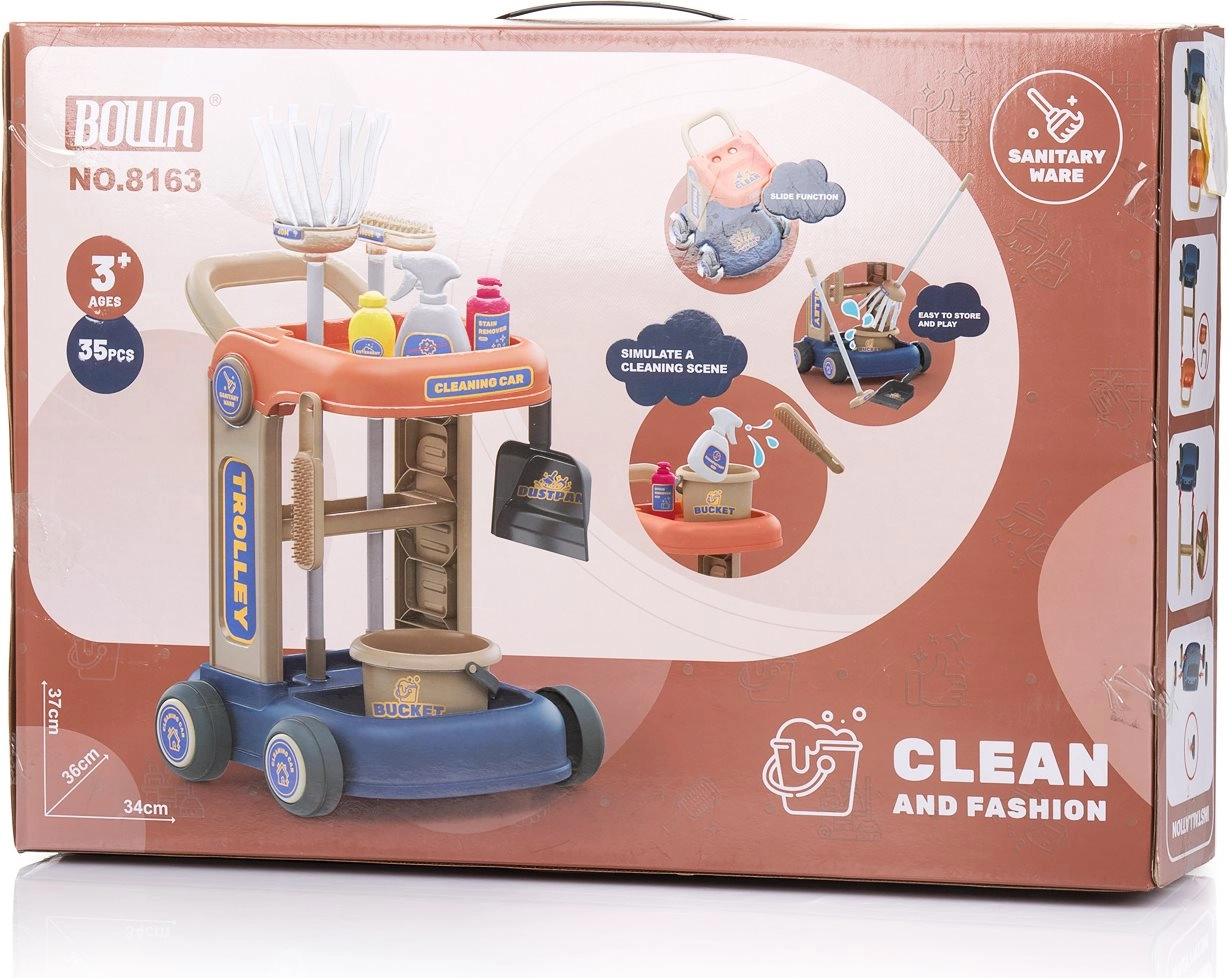 Der Kinder-Putzwagen CHIPOLINO ist eine tolle Möglichkeit, Kinder zu Selbstständigkeit und Verantwortungsbewusstsein zu führen. Der kompakte Wagen auf Rädern mit praktischem Griff fasst sämtliches Zubehör und erleichtert das Transportieren in der Wohnung. Realistische Accessoires wie Eimer mit Auswringer, Besen, Handfeger mit Schaufel sowie eine Sprühflasche für das „Putzen“ machen jede Aufräumaktion zu einem Spiel.