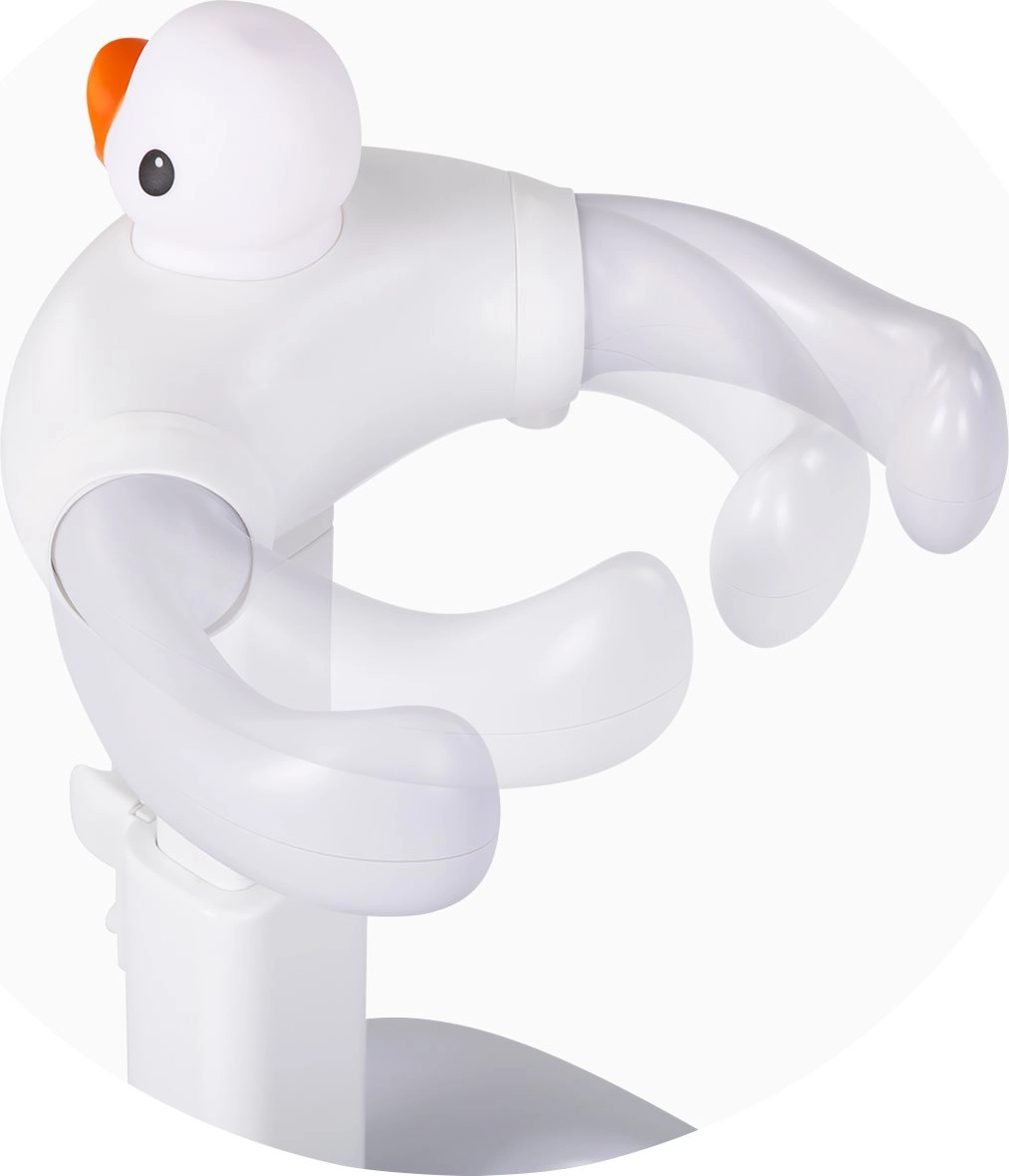 Der kindgerechte Entenkopf dient als ergonomische Stütze und hilft, eine positive Beziehung zum Baden aufzubauen.