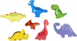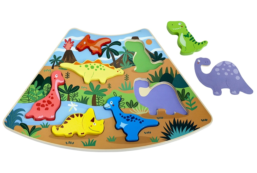 Dieses Holz-Einlegepuzzle mit Dinosauriern ist ideal für die ersten Puzzleversuche. Kräftige, glatte Teile lassen sich leicht greifen; Kinder setzen sie in die passenden Formen ein und trainieren dabei die Auge-Hand-Koordination. Dank leuchtender Farben und niedlicher Illustrationen lernen Kinder spielerisch, Farben und Formen zu unterscheiden.