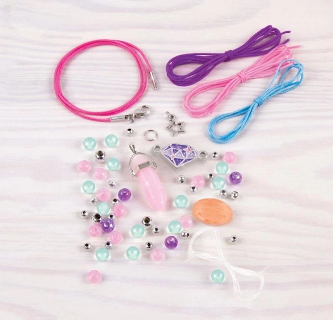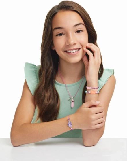 Fördern Sie die Kreativität von Kindern mit diesem Set, aus dem im Handumdrehen eine Halskette und 3 Armbänder aus kristallförmigen Perlen entstehen. Im Set ist alles Nötige enthalten, inklusive verstellbarer Schnüre und zarter Pastellfarben – das ideale Geschenk für Kinder ab 8 Jahren.