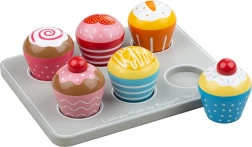 Sechs fröhliche Holz-Muffins auf einem Tablett zum Spielen in der Kinderküche, im Laden oder bei der Teerunde. Jeder Muffin ist farbenfroh verziert, lässt sich leicht in den Holzständer einsetzen und fördert die kindliche Fantasie, die Feinmotorik und soziale Fähigkeiten. Hergestellt aus hochwertigem, verantwortungsvoll beschafftem Holz und gemäß den aktuellen europäischen Sicherheitsnormen.