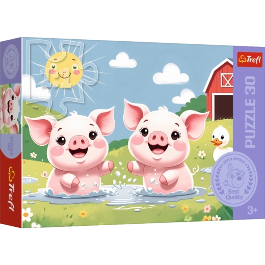 Entdecken Sie das niedliche Trefl-Puzzle „Fröhliches Landleben“, das alle kleinen Tierfreunde begeistern wird. Das Set mit 30 Teilen ergibt nach dem Zusammensetzen ein fröhliches Bild mit zwei Schweinchen, die in einer Pfütze spielen. Dank des speziellen kalandrierten Papiers glänzen die Teile angenehm und lassen sich leicht verbinden.