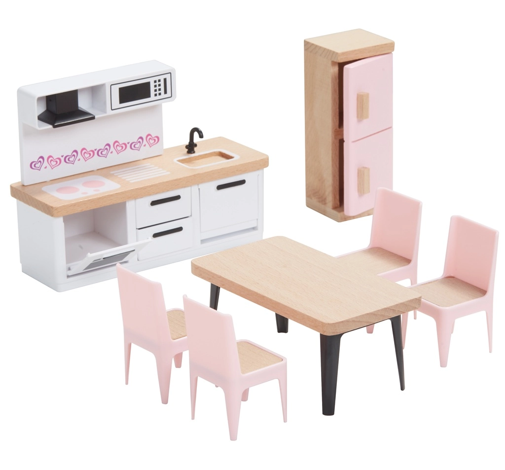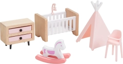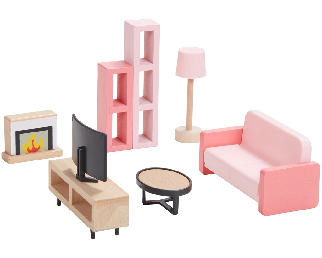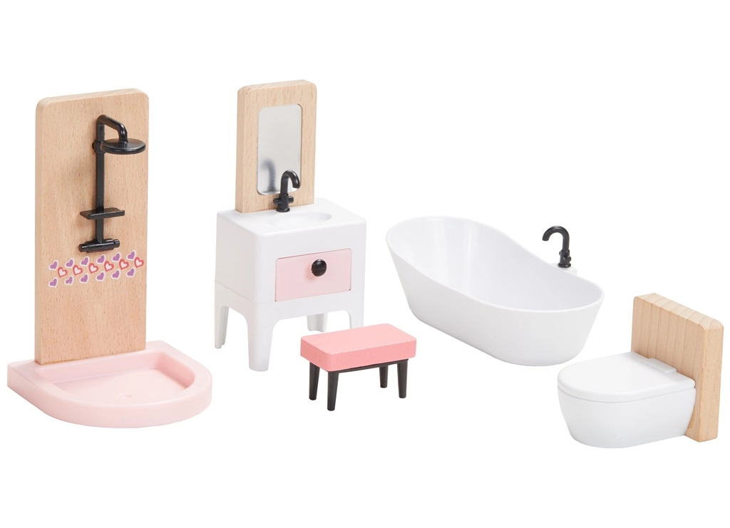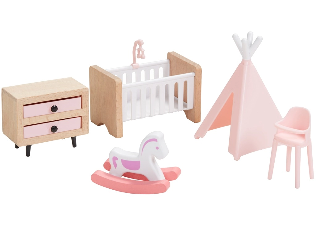 Das 5-in-1-Set stattet Schlafzimmer, Küche, Wohnzimmer, Bad und Kinderzimmer aus – einfach auspacken und losspielen. Ideal als Erstausstattung für das erste Puppenhaus.