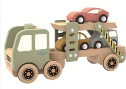 Der Holz-Autotransporter ist die ideale Wahl für kleine Autoliebhaber. Dank der robusten Verarbeitung und durchdachten Details haben Kinder viel Spaß beim Aufladen, Abladen und Fahren. Die natürliche Holzoptik in Kombination mit sanften Farben wirkt elegant und ist alltagstauglich.