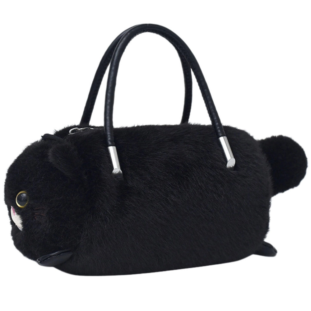 Diese schwarze Plüsch-Handtasche in Form einer süßen Katze bezaubert mit weicher Haptik und liebevoll ausgearbeiteten Details – mit Öhrchen, Äuglein und Schwanz. Dank ihrer kompakten Maße ist sie perfekt für das Nötigste, egal ob für die Stadt, die Schule oder als verspielter Akzent zu Freizeit-Outfits.